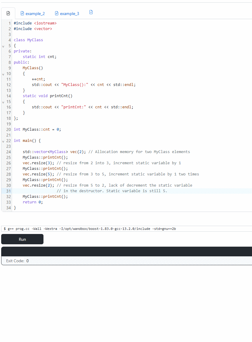 - Use within a class. In practice, this means that a given element(variable or function) will be common to every instance of a given class. Below is an example of static variable incremented in the constructor.